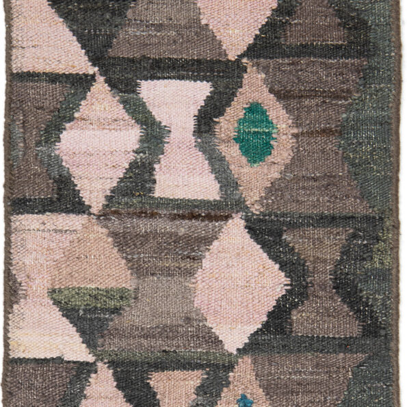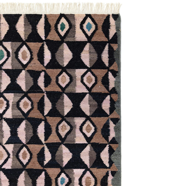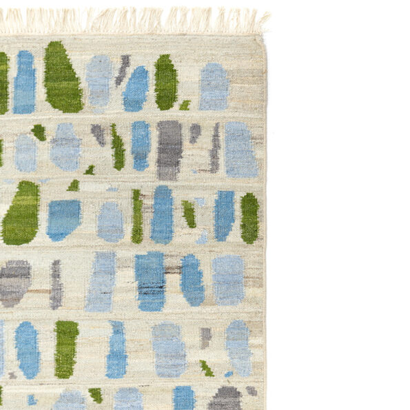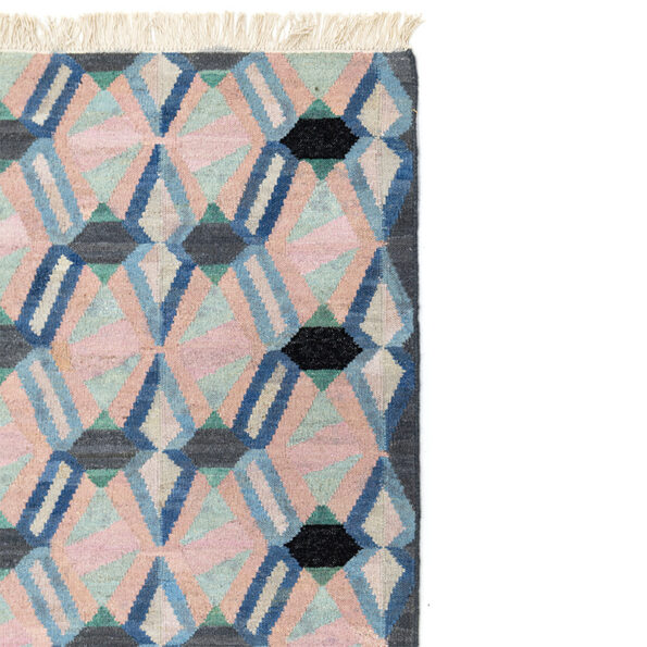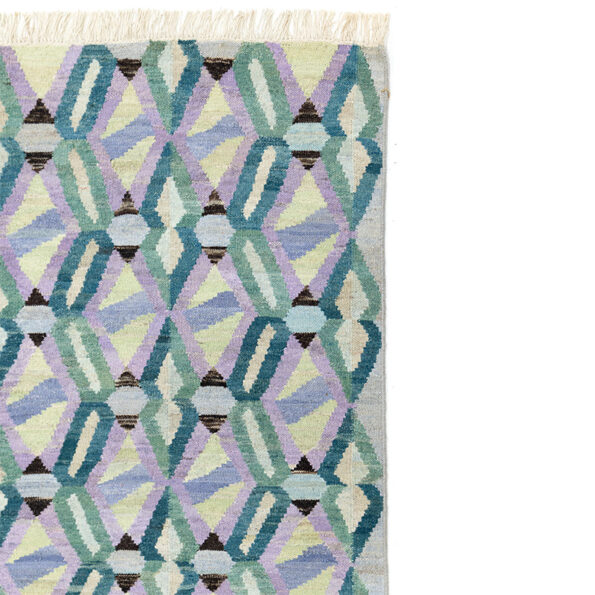 The Kilim collection features the designs Bamako, Free-style, Arletty, and Mosaico. Woven with straight sides and finished with warp fringe at the top and bottom in classic flat-woven tradition. The fringe may be left loose or carefully folded and sewn back.